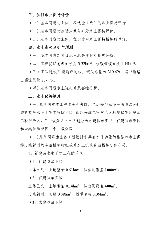 (四)基本同意水土流失防治分区和分区防治措施布设。