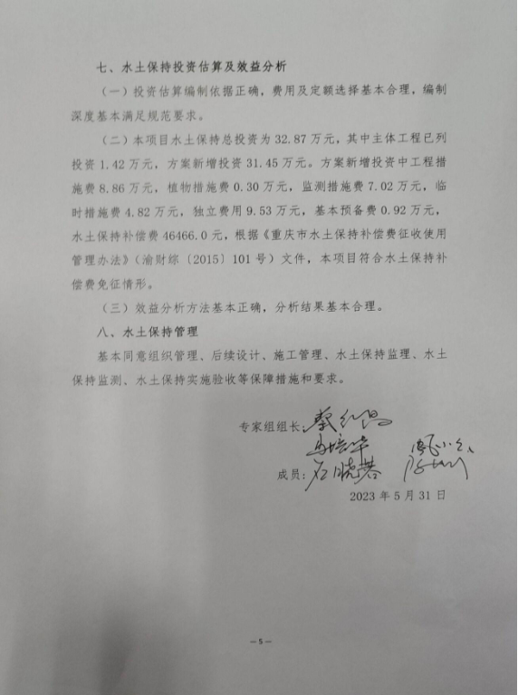 本工程水土保持总投资32.87万元,其中主体已列投资1.42万元,方案新增投资31.45万元。其中工程措施8.86万元;植物措施0.30万元,监测措施7.02万元,施工临时措施4.82万元,独立费用9.53万元,基本预备费0.92万元,水土保持补偿费46466.0元(免征)。