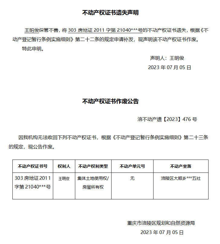 下一篇:徐仁杰遗失声明与作废公告涪不动产遗【2023】475号