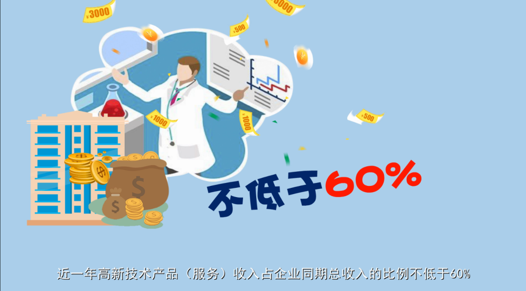 6.高新技术产品(服务)收入占比:近一年高新技术产品(服务)收入占企业同期总收入的比例不低于60%;