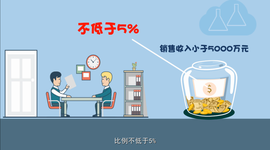 (1)最近一年销售收入小于5000万元(含)的企业,比例不低于5%;