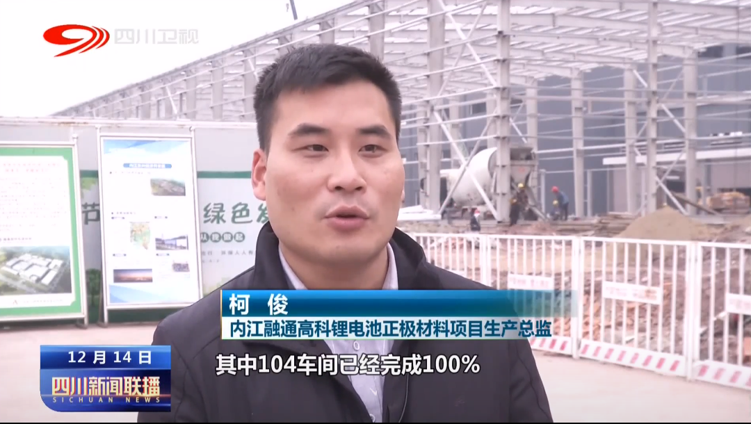 在内江东兴区,内江融通高科锂电池正极材料项目一期建设进入冲刺阶段,部分标准化厂房已完成封顶,工人们也正加紧进行生产设备的安装调试。