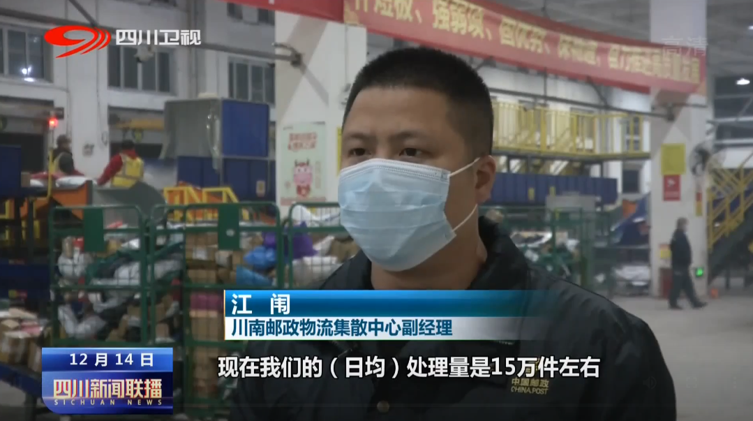 川南邮政物流集散中心副经理 江闱:我们中心分两期建设,目前一期已经建成投用,现在我们的处理量是日均15万件左右,峰值日均量达到29万件左右,我们现在正在着手二期项目的建设施工,建成之后,日均处理量能力将达到100万件以上。
