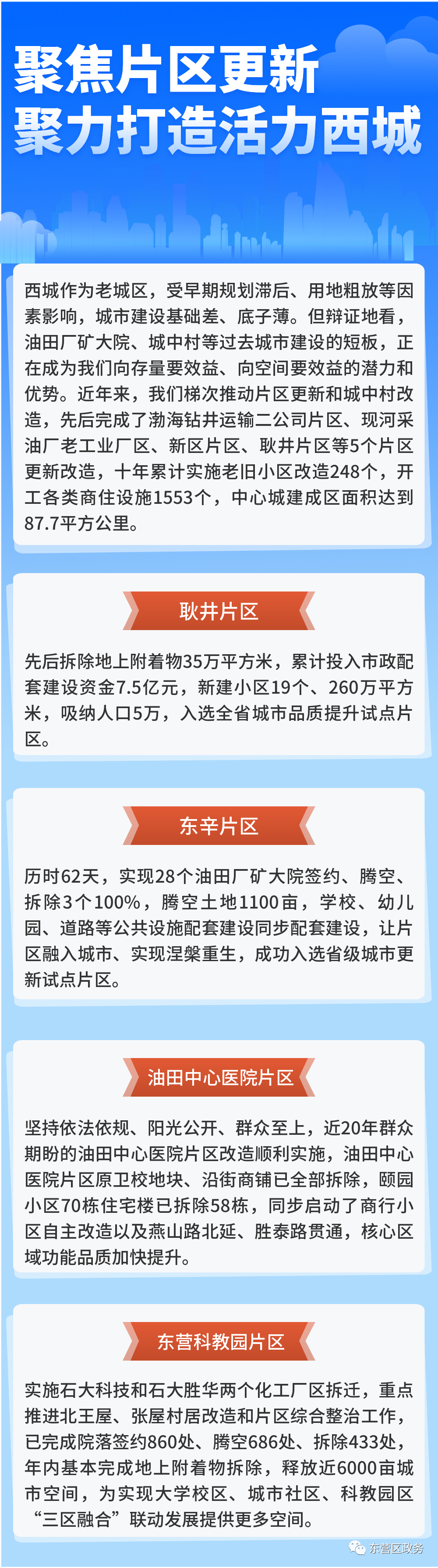 下一步,东营区将扛牢使命担当,按照“打造舒朗大气、生态宜居的魅力城区”目标要求,以城市更新为主抓手,创新实干、事争一流,攻坚克难、加压奋进,全力重塑一个高品质现代化的新西城,以优异成绩迎接党的二十大胜利召开!