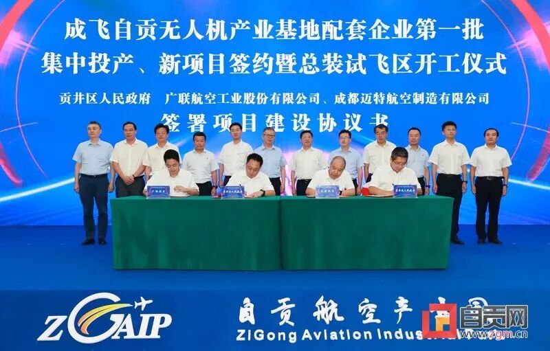 8月17日,成飞自贡无人机产业基地配套企业第一批集中投产、新项目签约暨新区开工仪式在自贡航空产业园举行。图源自贡网
