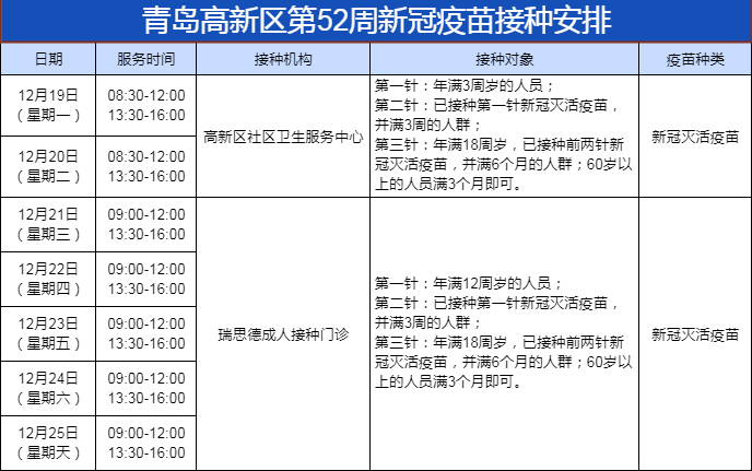 ①根据山东省和青岛市疫情防控相关要求,接种前需测温(<37.3℃)、扫“青岛一码通”(无异常弹窗);