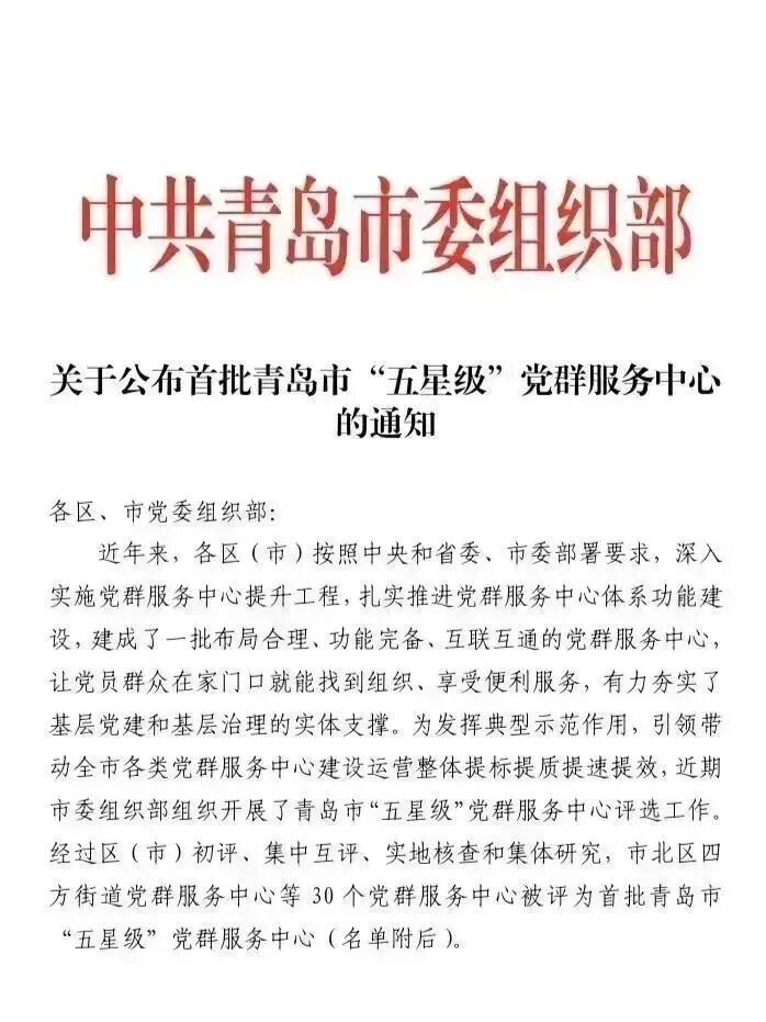 青岛市“五星级”党群服务中心评选工作