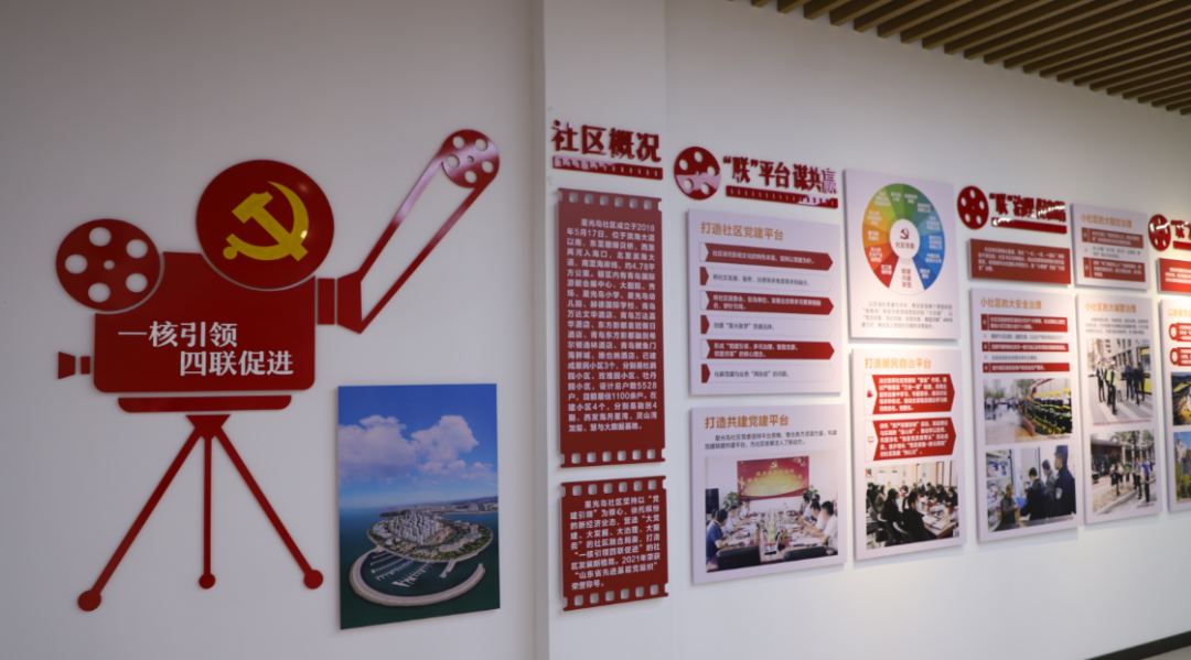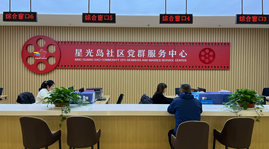星光岛社区党群服务中心面积约1600平米,围绕“星光聚力 乐活共享”党建品牌,以“党建引领、多元治理、智慧支撑、邻里共享”为核心理念,以“电影文化”为脉络,以文旅需求为服务特色,打造创新型智慧党建+红色电影文化党群服务中心。以“星”为主线串联形成独具星光岛特色的党群服务中心, 一层主要体现便民服务和文化展示功能,含便民服务大厅、志愿者服务驿站、骑士驿站、星客厅、街道社区党建文化展示、星光驿站、调解室+心理咨询室;二层主要体现各项功能活动室,含非遗手工实践室、棋牌室、图书室+电子阅览室、儿童活动角、健身室+舞蹈室、多功能室(红色影厅)。按照功能定位划分四大主题区,星光领航、凝心聚力,突出党建引领下的社区服务和工作成果展示;星光共治、多元参与,涵盖各部门办公阵地,以党群联动促进城市基层治理;星光筑梦、活力时尚,利用多功能室,集合会议、文艺汇演、红色电影等多功能使用场景,满足不同文化需要;星连万家、枝叶关情,充分利用走廊空间作为社区文化展示平台,呈现居民的多彩生活。党群服务中心现有社区专职工作人员13人,面向辖区单位、企业、居民、新就业群体等开放共享,整合各类资源优势,今年以来,常态化开展“岛主畅聊吧”、节日主题活动、书画展、党员奉献日等各类活动20余次。