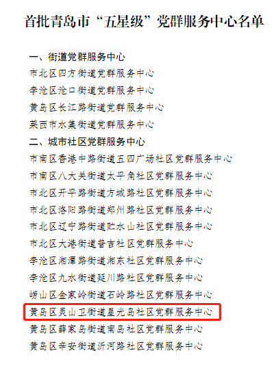 灵山卫街道星光岛社区党群服务中心榜上有名